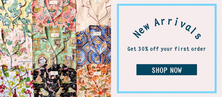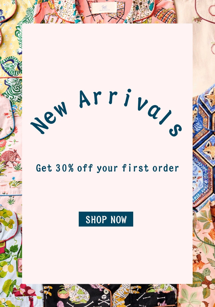Our new celebratory pajama print honoring our very bestseller, Bagheera.